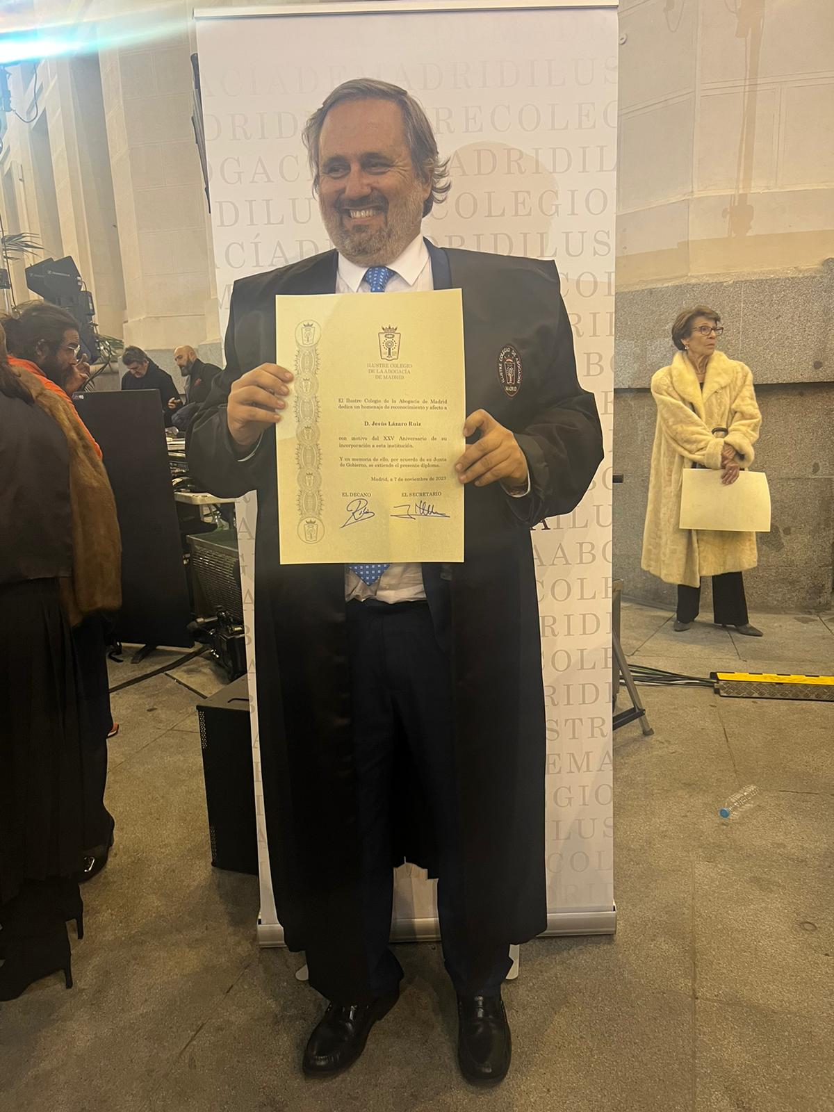 08 Nov JESÚS LÁZARO RUIZ ES RECONOCIDO POR EL ILUSTRE COLEGIO DE ABOGADOS DE MADRID POR SUS 25 AÑOS DE COLEGIADO EN ICAM